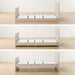 The height of the bed can be rearranged to three levels (approx. 14, 20, and 34 cm) according to your preference.